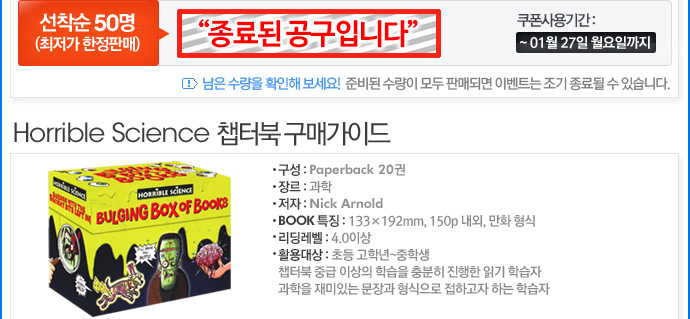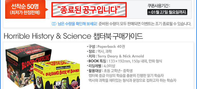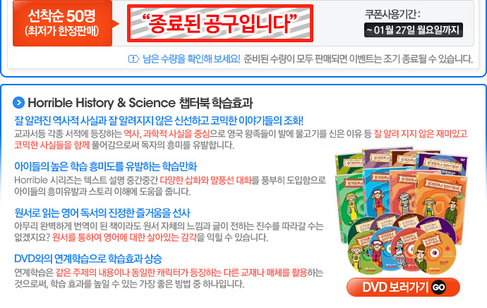 <table width="690" border="0" cellspacing="0" cellpadding="0"> <tr> <td><img src="/KIZ/etc/img2/kongu140121_HorribleSeries01.jpg" width="690" height="589" border="0"></td> </tr> <tr> <td><img src="/KIZ/etc/img2/kongu140121_HorribleSeries02.jpg" width="690" height="212"></td> </tr> <tr> <td height="47" align="right" style="background:url(/KIZ/etc/img2/kongu130711_Ben10_03.jpg) no-repeat top left;vertical-align:top;padding-right:18px;padding-top:0px;"> <table width="350" border="0" cellspacing="0" cellpadding="0"> <tr> <td width="229"><iframe width="180" height="39" frameborder="no" scrolling="no" src="/shop/proc/stock_call.php?goodsno=35284"></iframe></td> <td width="161"><a href="/shop/goods/goods_view.php?&goodsno=35284"><img src="/KIZ/etc/img2/kongu130110_btn.jpg" width="161" height="39" border="0"></a></td> </tr> </table></td> </tr> <tr> <td><img src="/KIZ/etc/img2/kongu140121_HorribleSeries03.jpg" width="690" height="319" border="0"></td> </tr> <tr> <td height="47" align="right" style="background:url(/KIZ/etc/img2/kongu130711_Ben10_03.jpg) no-repeat top left;vertical-align:top;padding-right:18px;padding-top:0px;"> <table width="350" border="0" cellspacing="0" cellpadding="0"> <tr> <td width="229"><iframe width="180" height="39" frameborder="no" scrolling="no" src="/shop/proc/stock_call.php?goodsno=25352"></iframe></td> <td width="161"><a href="/shop/goods/goods_view.php?&goodsno=25352"><img src="/KIZ/etc/img2/kongu130110_btn.jpg" width="161" height="39" border="0"></a></td> </tr> </table></td> </tr> <tr> <td><img src="/KIZ/etc/img2/kongu140121_HorribleSeries04.jpg" width="690" height="313"></td> </tr> <tr> <td height="47" align="right" style="background:url(/KIZ/etc/img2/kongu140121_HorribleSeries05.jpg) no-repeat top left;vertical-align:top;padding-right:18px;padding-top:0px;"> <table width="350" border="0" cellspacing="0" cellpadding="0"> <tr> <td width="229"><iframe width="180" height="39" frameborder="no" scrolling="no" src="/shop/proc/stock_call.php?goodsno=35285"></iframe></td> <td width="161"><a href="/shop/goods/goods_view.php?&goodsno=35285"><img src="/KIZ/etc/img2/kongu130110_btn.jpg" width="161" height="39" border="0"></a></td> </tr> </table></td> </tr> <tr> <td><img src="/KIZ/etc/img2/kongu140121_HorribleSeries06.jpg" width="690" height="437" border="0" usemap="#dvdp"></td> </tr> <tr> <td><img src="/KIZ/etc/img2/kongu140121_HorribleSeries07.jpg" width="690" height="567"></td> </tr> <tr> <td><img src="/KIZ/etc/img2/kongu140121_HorribleSeries08.jpg" width="690" height="634"></td> </tr> <tr> <td><img src="/KIZ/etc/img2/kongu140121_HorribleSeries09.jpg" width="690" height="587"></td> </tr> <tr> <td><img src="/KIZ/etc/img2/kongu130903_Spiderwick08.jpg" width="690" height="149" border="0" usemap="#guide"></td> </tr> </table> <map name="guide"> <area shape="rect" coords="508,7,688,49" href="#m" onClick="javascript:window.open('/KIZ/etc/kongu111229_buyingGuide.html','','width=683, height=600, scrollbars=yes')" onFocus="this.blur();"> </map> <map name="dvdp" id="dvdp"> <area shape="rect" coords="485,388,658,428" href="/shop/goods/goods_list.php?category=010001005013" target="_blank" onFocus="this.blur();"> </map>