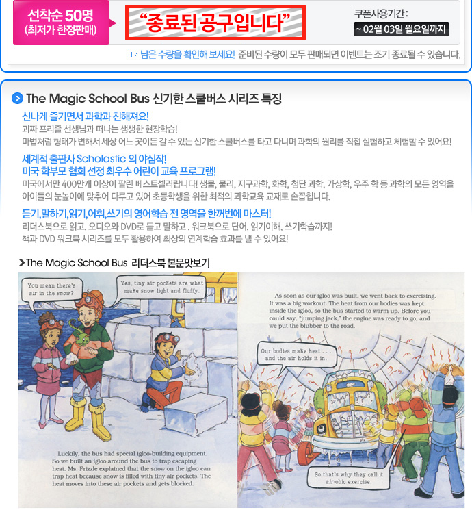 <table width="690" border="0" cellspacing="0" cellpadding="0"> <tr> <td><img src="/KIZ/etc/img2/kongu140123_SchoolBus01.jpg" width="690" height="731" border="0"></td> </tr> <tr> <td><img src="/KIZ/etc/img2/kongu140123_SchoolBus02.jpg" width="690" height="387" border="0"></td> </tr> <tr> <td height="50" style="background:url(/KIZ/etc/img2/kongu140123_SchoolBus05a.jpg) no-repeat top left;vertical-align:top;padding-right:18px;padding-top:0px;" align="right"> <table width="350" border="0" cellspacing="0" cellpadding="0"> <tr> <td width="229"><iframe width="180" height="39" frameborder="no" scrolling="no" src="/shop/proc/stock_call.php?goodsno=16182"></iframe></td> <td width="161"><a href="/shop/goods/goods_view.php?&goodsno=16182"><img src="/KIZ/etc/img2/kongu130110_btn.jpg" width="161" height="39" border="0"></a></td> </tr> </table></td> </tr> <tr> <td><img src="/KIZ/etc/img2/kongu140123_SchoolBus03.jpg" width="690" height="536"></td> </tr> <tr> <td height="50" style="background:url(/KIZ/etc/img2/kongu140123_SchoolBus05a.jpg) no-repeat top left;vertical-align:top;padding-right:18px;padding-top:0px;" align="right"> <table width="320" border="0" cellspacing="0" cellpadding="0"> <tr> <td width="159"><iframe width="180" height="39" frameborder="no" scrolling="no" src="/shop/proc/stock_call.php?goodsno=37779"></iframe></td> <td width="161"><a href="/shop/goods/goods_view.php?&goodsno=37779"><img src="/KIZ/etc/img2/kongu130110_btn.jpg" width="161" height="39" border="0"></a></td> </tr> </table></td> </tr> <tr> <td><img src="/KIZ/etc/img2/kongu140123_SchoolBus04.jpg" width="690" height="635" border="0" usemap="#gift"></td> </tr> <tr> <td height="50" style="background:url(/KIZ/etc/img2/kongu140123_SchoolBus05.jpg) no-repeat top left;vertical-align:top;padding-right:18px;padding-top:0px;" align="right"> <table width="358" border="0" cellspacing="0" cellpadding="0"> <tr> <td width="197"><iframe width="180" height="39" frameborder="no" scrolling="no" src="/shop/proc/stock_call.php?goodsno=32284"></iframe></td> <td width="161"><a href="/shop/goods/goods_view.php?&goodsno=32284"><img src="/KIZ/etc/img2/kongu130110_btn.jpg" width="161" height="39" border="0"></a></td> </tr> </table></td> </tr> <tr> <td><img src="/KIZ/etc/img2/kongu140123_SchoolBus06.jpg" width="690" height="745"></td> </tr> <tr> <td height="74" valign="top" background="/KIZ/etc/img2/kongu140123_SchoolBus07.jpg"> <table width="690" border="0" cellspacing="0" cellpadding="0"> <tr> <td width="146"> </td> <td width="155"><SCRIPT type=text/javascript>MediaPlayer('','TheMagicSchoolBus_Readig1.m4a',155,26,true);</SCRIPT></td> <td width="222"> </td> <td width="167" height="26"><SCRIPT type=text/javascript>MediaPlayer('','TheMagicSchoolBus_Readig2.m4a',155,26,true);</SCRIPT></td> </tr> </table></td> </tr> <tr> <td height="268" style="background:url(/KIZ/etc/img2/kongu130404_SchoolBus07a.jpg) no-repeat top left;vertical-align:top;text-align:left;"><table width="690" border="0" cellspacing="0" cellpadding="0"> <tr> <td width="27" height="268"><img src="/KIZ/etc/img2/kongu111115_1anne_dot.gif" width="33" height="20"></td> <td width="311" style="text-align:left;vertical-align:top;"><SCRIPT type=text/javascript>MediaPlayer('','magicschoolbus_04.mp4',311,237,true);</SCRIPT></td> <td width="14"><img src="/KIZ/etc/img2/kongu111115_1anne_dot.gif" width="14" height="20"></td> <td width="332" height="268" style="text-align:left;vertical-align:top;"><SCRIPT type=text/javascript>MediaPlayer('','magicschoolbus_01.mp4',311,237,true);</SCRIPT></td> </tr> </table></td> </tr> <tr> <td> </td> </tr> <tr> <td><img src="/KIZ/etc/img2/kongu130404_SchoolBus08.jpg" width="690" height="524" border="0" usemap="#view"></td> </tr> <tr> <td><img src="/KIZ/etc/img2/kongu130903_Spiderwick08.jpg" width="690" height="149" border="0" usemap="#guide"></td> </tr> </table> <map name="guide"> <area shape="rect" coords="508,7,688,49" href="#m" onClick="javascript:window.open('/KIZ/etc/kongu111229_buyingGuide.html','','width=683, height=600, scrollbars=yes')" onFocus="this.blur();"> </map> <map name="view"> <area shape="rect" coords="552,141,673,178" href="/shop/board/view.php?id=contents&search[subject]=on&search[word]=Magic+School+Bus&no=607" target="_blank" onFocus="this.blur();"> <area shape="rect" coords="551,304,672,342" href="/shop/board/view.php?id=contents&search[subject]=on&search[word]=Magic+School+Bus&no=608" target="_blank" onFocus="this.blur();"> <area shape="rect" coords="551,466,674,503" href="/shop/board/view.php?id=contents&search[subject]=on&search[word]=Magic+School+Bus&no=602" target="_blank" onFocus="this.blur();"> </map> <map name="gift" id="gift"> <area shape="rect" coords="483,323,665,369" href="#" onClick="javascript:window.open('/KIZ/etc/kongu111229_msbusPop.html','','width=766, height=600, scrollbars=yes')" onFocus="this.blur();"> </map>
