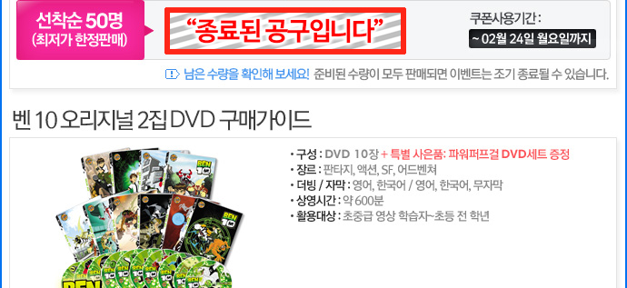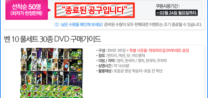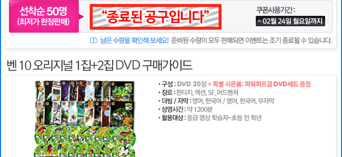 <table width="690" border="0" cellspacing="0" cellpadding="0"> <tr> <td><img src="/KIZ/etc/img2/kongu140218_Ben10DVD01.jpg" width="690" height="831" border="0"></td> </tr> <tr> <td height="47" style="background:url(/KIZ/etc/img2/kongu140218_Ben10DVD02.jpg) no-repeat top left;vertical-align:top;padding-right:19px;padding-top:0px;" align="right"> <table width="350" border="0" cellspacing="0" cellpadding="0"> <tr> <td width="229"><iframe width="180" height="39" frameborder="no" scrolling="no" src="/shop/proc/stock_call.php?goodsno=37114"></iframe></td> <td width="161"><a href="/shop/goods/goods_view.php?&goodsno=37114"><img src="/KIZ/etc/img2/kongu130110_btn.jpg" width="161" height="39" border="0"></a></td> </tr> </table></td> </tr> <tr> <td><img src="/KIZ/etc/img2/kongu140218_Ben10DVD03.jpg" width="690" height="317"></td> </tr> <tr> <td height="47" style="background:url(/KIZ/etc/img2/kongu140218_Ben10DVD04.jpg) no-repeat top left;vertical-align:top;padding-right:19px;padding-top:0px;" align="right"> <table width="350" border="0" cellspacing="0" cellpadding="0"> <tr> <td width="229"><iframe width="180" height="39" frameborder="no" scrolling="no" src="/shop/proc/stock_call.php?goodsno=38261"></iframe></td> <td width="161"><a href="/shop/goods/goods_view.php?&goodsno=38261"><img src="/KIZ/etc/img2/kongu130110_btn.jpg" width="161" height="39" border="0"></a></td> </tr> </table></td> </tr> <tr> <td><img src="/KIZ/etc/img2/kongu140218_Ben10DVD05.jpg" width="690" height="314"></td> </tr> <tr> <td height="47" style="background:url(/KIZ/etc/img2/kongu140218_Ben10DVD06.jpg) no-repeat top left;vertical-align:top;padding-right:19px;padding-top:0px;" align="right"> <table width="350" border="0" cellspacing="0" cellpadding="0"> <tr> <td width="229"><iframe width="180" height="39" frameborder="no" scrolling="no" src="/shop/proc/stock_call.php?goodsno=34702"></iframe></td> <td width="161"><a href="/shop/goods/goods_view.php?&goodsno=34702"><img src="/KIZ/etc/img2/kongu130110_btn.jpg" width="161" height="39" border="0"></a></td> </tr> </table></td> </tr> <tr> <td><img src="/KIZ/etc/img2/kongu140218_Ben10DVD07.jpg" width="690" height="317"></td> </tr> <tr> <td height="47" style="background:url(/KIZ/etc/img2/kongu140218_Ben10DVD08.jpg) no-repeat top left;vertical-align:top;padding-right:19px;padding-top:0px;" align="right"> <table width="350" border="0" cellspacing="0" cellpadding="0"> <tr> <td width="229"><iframe width="180" height="39" frameborder="no" scrolling="no" src="/shop/proc/stock_call.php?goodsno=38260"></iframe></td> <td width="161"><a href="/shop/goods/goods_view.php?&goodsno=38260"><img src="/KIZ/etc/img2/kongu130110_btn.jpg" width="161" height="39" border="0"></a></td> </tr> </table></td> </tr> <tr> <td><img src="/KIZ/etc/img2/kongu140218_Ben10DVD09.jpg" width="690" height="326"></td> </tr> <tr> <td height="47" style="background:url(/KIZ/etc/img2/kongu140218_Ben10DVD10.jpg) no-repeat top left;vertical-align:top;padding-right:19px;padding-top:0px;" align="right"> <table width="350" border="0" cellspacing="0" cellpadding="0"> <tr> <td width="229"><iframe width="180" height="39" frameborder="no" scrolling="no" src="/shop/proc/stock_call.php?goodsno=38258"></iframe></td> <td width="161"><a href="/shop/goods/goods_view.php?&goodsno=38258"><img src="/KIZ/etc/img2/kongu130110_btn.jpg" width="161" height="39" border="0"></a></td> </tr> </table></td> </tr> <tr> <td><img src="/KIZ/etc/img2/kongu140218_Ben10DVD11.jpg" width="690" height="445" border="0" usemap="#gift"></td> </tr> <tr> <td height="246" style="background:url(/KIZ/etc/img2/kongu140218_Ben10DVD12.jpg) no-repeat top left;vertical-align:top;text-align:left;"><table width="690" border="0" cellspacing="0" cellpadding="0"> <tr> <td width="28" height="246"><img src="/KIZ/etc/img2/kongu111115_1anne_dot.gif" width="29" height="20"></td> <td width="311" style="text-align:left;vertical-align:top;"><SCRIPT type=text/javascript>MediaPlayer('','Ben10_Original.mp4',311,237,true);</SCRIPT></td> <td width="14"><img src="/KIZ/etc/img2/kongu111115_1anne_dot.gif" width="14" height="20"></td> <td width="336" height="268" style="text-align:left;vertical-align:top;"><SCRIPT type=text/javascript>MediaPlayer('','130711_Ben10.mp4',311,237,true);</SCRIPT></td> </tr> </table></td> </tr> <tr> <td height="287" style="background:url(/KIZ/etc/img2/kongu140218_Ben10DVD13.jpg) no-repeat top left;vertical-align:top;text-align:left;padding-left:28px;padding-top:19px;"><SCRIPT type=text/javascript>MediaPlayer('','120202_Ben10.mp4',311,237,true);</SCRIPT></td> </tr> <tr> <td><img src="/KIZ/etc/img2/kongu130711_Ben10_09.jpg" width="690" height="351" border="0"></td> </tr> <tr> <td><img src="/KIZ/etc/img2/kongu130903_Spiderwick08.jpg" width="690" height="149" border="0" usemap="#guide"></td> </tr> </table> <map name="guide"> <area shape="rect" coords="508,7,688,49" href="#m" onClick="javascript:window.open('/KIZ/etc/kongu111229_buyingGuide.html','','width=683, height=600, scrollbars=yes')" onFocus="this.blur();"> </map> <map name="view"> <area shape="rect" coords="264,560,406,600" href="/shop/board/view.php?id=contents&search[subject]=on&search[word]=men&no=819" target="_blank" onFocus="this.blur();"> <area shape="rect" coords="287,788,431,827" href="/shop/board/view.php?id=contents&search[subject]=on&search[word]=men&no=818" target="_blank" onFocus="this.blur();"> </map> <map name="gift" id="gift"> <area shape="rect" coords="236,316,391,355" href="http://www.eplis.co.kr/shop/goods/goods_view.php?&goodsno=35612&category=010003035" target="_blank" alt="»çÀºÇ° ÀÚ¼¼È÷º¸±â"> </map>