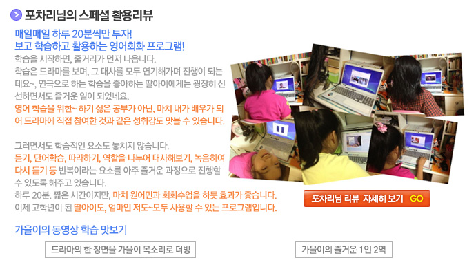 <table width="690" border="0" cellspacing="0" cellpadding="0"> <tr> <td><img src="/KIZ/etc/img2/spkongu140226_English20_01.jpg" width="690" height="611"></td> </tr> <tr> <td><img src="/KIZ/etc/img2/spkongu140226_English20_02.jpg" width="690" height="493" border="0" usemap="#prod"></td> </tr> <tr> <td><img src="/KIZ/etc/img2/spkongu140226_English20_03.jpg" width="690" height="218"></td> </tr> <tr> <td height="237" style="vertical-align:top;text-align:center;"><table width="656" border="0" cellspacing="2" cellpadding="0"> <tr> <td width="325" height="243" valign="top"><SCRIPT type=text/javascript>MediaPlayer('','english20c.mp4',325,243,true);</SCRIPT></td> <td width="325" valign="top"><SCRIPT type=text/javascript>MediaPlayer('','english20d.mp4',325,243,true);</SCRIPT></td> </tr> </table></td> </tr> <tr> <td><img src="/KIZ/etc/img2/spkongu140226_English20_06.jpg" width="690" height="999"></td> </tr> <tr> <td><img src="/KIZ/etc/img2/kongu130328_English20_07.jpg" width="690" height="971"></td> </tr> <tr> <td><img src="/KIZ/etc/img2/spkongu140226_English20_04.jpg" width="690" height="378" border="0" usemap="#view"></td> </tr> <tr> <td align="center"><table width="660" border="0" cellspacing="0" cellpadding="0"> <tr> <td width="330" height="250" align="center"><IFRAME height=250 src="http://serviceapi.nmv.naver.com/flash/convertIframeTag.nhn?vid=61ADBA6FD4A20F36BF8969BA8C02E3FE614D&outKey=V1248250a315b525b43df9fbac37c07f8cbb82d2bca08bb6032d59fbac37c07f8cbb8" frameBorder=no width=330 scrolling=no></IFRAME></td> <td width="330" align="center"><IFRAME height=250 src="http://serviceapi.nmv.naver.com/flash/convertIframeTag.nhn?vid=87886A3E488AB126967DCAC3FCB4887A87FE&outKey=V12529f00b6baefea980464baedd96bed6a22182211c280b0bd8964baedd96bed6a22" frameBorder=no width=330 scrolling=no></IFRAME></td> </tr> </table></td> </tr> <tr> <td height="32" valign="top"><img src="/KIZ/etc/img2/spkongu140226_English20_05.jpg" width="690" height="207" border="0"></td> </tr> </table> <map name="prod"> <area shape="rect" coords="521,429,686,485" href="/shop/goods/goods_view.php?&goodsno=36737" target="_blank" onFocus="this.blur();"> </map> <map name="view"> <area shape="rect" coords="436,271,631,304" href="/shop/board/view.php?id=contents&no=1556" target="_blank" onFocus="this.blur();"> </map>