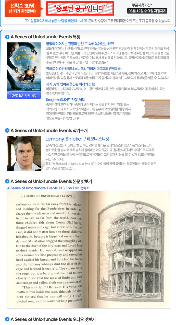 [¼±Âø¼ø°ø±¸] Á¾·á[¼±Âø¼ø Ư°¡°ø±¸ 412Â÷] A Series of Unfortunate Events (±â°£: ~3/12±îÁö) À¯Áö¼ö
