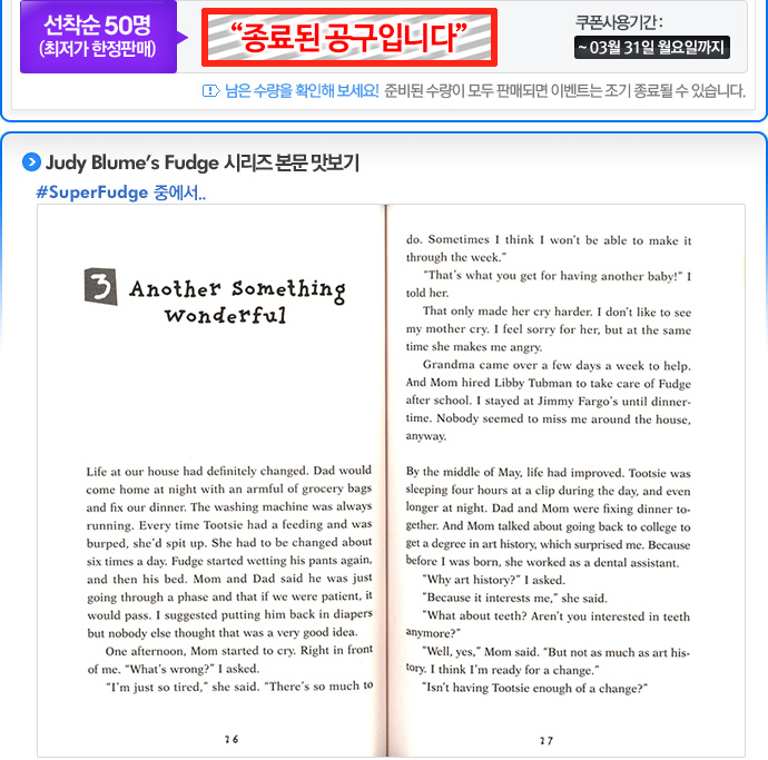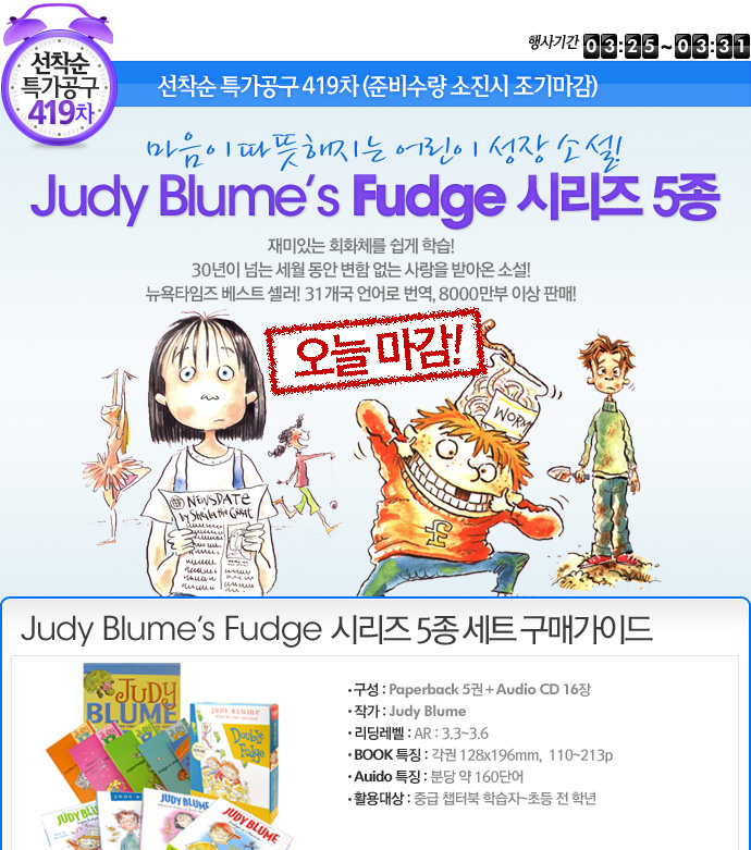 [¼±Âø¼ø°ø±¸] Á¾·á[¼±Âø¼ø Ư°¡°ø±¸ 419Â÷] Judy Blume's Fudge ½Ã¸®Áî 5Á¾ (±â°£: ~3/31±îÁö) À¯Áö¼ö