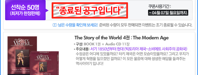 <table width="690" border="0" cellspacing="0" cellpadding="0"> <tr> <td><img src="/KIZ/etc/img2/kongu140401_StoryoftheWorld01.jpg" width="690" height="754" border="0"></td> </tr> <tr> <td height="51" align="right" style="background:url(/KIZ/etc/img2/kongu140401_StoryoftheWorld01a.jpg) no-repeat top left;vertical-align:top;padding-right:19px;padding-top:0px;"> <table width="370" border="0" cellspacing="0" cellpadding="0"> <tr> <td width="249"><iframe width="180" height="39" frameborder="no" scrolling="no" src="/shop/proc/stock_call.php?goodsno=24515"></iframe></td> <td width="161"><a href="/shop/goods/goods_view.php?&goodsno=24515"><img src="/KIZ/etc/img2/kongu130110_btn.jpg" width="161" height="39" border="0"></a></td> </tr> </table></td> </tr> <tr> <td><img src="/KIZ/etc/img2/kongu140401_StoryoftheWorld02.jpg" width="690" height="313" border="0"></td> </tr> <tr> <td height="51" align="right" style="background:url(/KIZ/etc/img2/kongu140401_StoryoftheWorld02a.jpg) no-repeat top left;vertical-align:top;padding-right:19px;padding-top:0px;"> <table width="406" border="0" cellspacing="0" cellpadding="0"> <tr> <td width="245"><iframe width="180" height="39" frameborder="no" scrolling="no" src="/shop/proc/stock_call.php?goodsno=17437"></iframe></td> <td width="161"><a href="/shop/goods/goods_view.php?&goodsno=17437"><img src="/KIZ/etc/img2/kongu130110_btn.jpg" width="161" height="39" border="0"></a></td> </tr> </table></td> </tr> <tr> <td><img src="/KIZ/etc/img2/kongu140401_StoryoftheWorld03.jpg" width="690" height="263" border="0"></td> </tr> <tr> <td height="51" align="right" style="background:url(/KIZ/etc/img2/kongu140401_StoryoftheWorld03a.jpg) no-repeat top left;vertical-align:top;padding-right:19px;padding-top:0px;"> <table width="406" border="0" cellspacing="0" cellpadding="0"> <tr> <td width="245"><iframe width="180" height="39" frameborder="no" scrolling="no" src="/shop/proc/stock_call.php?goodsno=17436"></iframe></td> <td width="161"><a href="/shop/goods/goods_view.php?&goodsno=17436"><img src="/KIZ/etc/img2/kongu130110_btn.jpg" width="161" height="39" border="0"></a></td> </tr> </table></td> </tr> <tr> <td><img src="/KIZ/etc/img2/kongu140401_StoryoftheWorld04.jpg" width="690" height="263" border="0"></td> </tr> <tr> <td height="51" align="right" style="background:url(/KIZ/etc/img2/kongu140401_StoryoftheWorld04a.jpg) no-repeat top left;vertical-align:top;padding-right:19px;padding-top:0px;"> <table width="406" border="0" cellspacing="0" cellpadding="0"> <tr> <td width="245"><iframe width="180" height="39" frameborder="no" scrolling="no" src="/shop/proc/stock_call.php?goodsno=17435"></iframe></td> <td width="161"><a href="/shop/goods/goods_view.php?&goodsno=17435"><img src="/KIZ/etc/img2/kongu130110_btn.jpg" width="161" height="39" border="0"></a></td> </tr> </table></td> </tr> <tr> <td><img src="/KIZ/etc/img2/kongu140401_StoryoftheWorld05.jpg" width="690" height="263" border="0"></td> </tr> <tr> <td height="51" align="right" style="background:url(/KIZ/etc/img2/kongu140401_StoryoftheWorld05a.jpg) no-repeat top left;vertical-align:top;padding-right:19px;padding-top:0px;"> <table width="406" border="0" cellspacing="0" cellpadding="0"> <tr> <td width="245"><iframe width="180" height="39" frameborder="no" scrolling="no" src="/shop/proc/stock_call.php?goodsno=17434"></iframe></td> <td width="161"><a href="/shop/goods/goods_view.php?&goodsno=17434"><img src="/KIZ/etc/img2/kongu130110_btn.jpg" width="161" height="39" border="0"></a></td> </tr> </table></td> </tr> <tr> <td><img src="/KIZ/etc/img2/kongu140401_StoryoftheWorld06.jpg" width="690" height="168"></td> </tr> <tr> <td height="243" style="background:url(/KIZ/etc/img2/kongu131203_StoryoftheWorld05.jpg) no-repeat top left;vertical-align:top;text-align:left;"><table width="349" border="0" cellspacing="0" cellpadding="0"> <tr> <td width="24" height="246"><img src="/KIZ/etc/img2/kongu111115_1anne_dot.gif" width="26" height="20"></td> <td width="3325" style="text-align:left;vertical-align:top;"><SCRIPT type=text/javascript>MediaPlayer('','kongu111228_story.mp4',325,243,true);</SCRIPT></td> </tr> </table></td> </tr> <tr> <td><img src="/KIZ/etc/img2/kongu131203_StoryoftheWorld06.jpg" width="690" height="588"></td> </tr> <tr> <td height="35" background="/KIZ/etc/img2/kongu131203_StoryoftheWorld07.jpg" style="padding:0px 21px 0px 0px;text-align:right;vertical-align:top;"><SCRIPT type=text/javascript>MediaPlayer('','storyWorld_vol02.m4a',280,26,true);</SCRIPT></td> </tr> <tr> <td><img src="/KIZ/etc/img2/kongu140401_StoryoftheWorld07.jpg" width="690" height="274"></td> </tr> <tr> <td><img src="/KIZ/etc/img2/kongu130903_Spiderwick08.jpg" width="690" height="149" border="0" usemap="#guide"></td> </tr> </table> <map name="guide"> <area shape="rect" coords="508,7,688,49" href="#m" onClick="javascript:window.open('/KIZ/etc/kongu111229_buyingGuide.html','','width=683, height=600, scrollbars=yes')" onFocus="this.blur();"> </map>