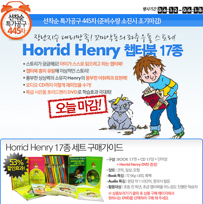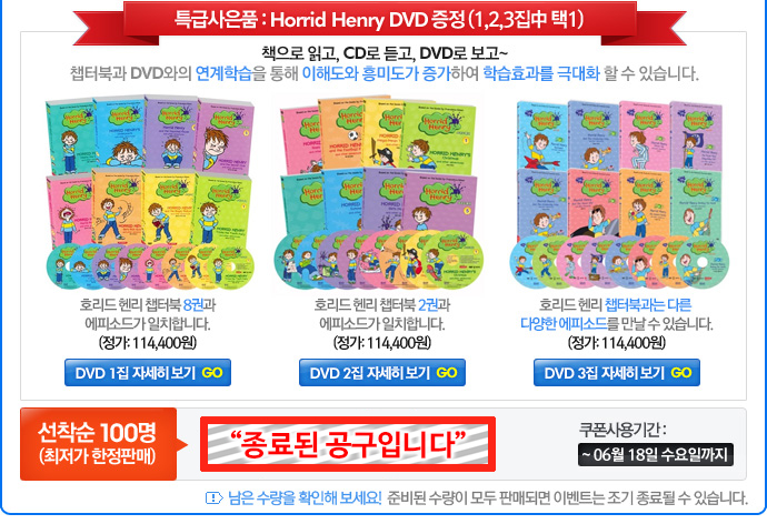 <table width="690" border="0" cellspacing="0" cellpadding="0"> <tr> <td><img src="/KIZ/etc/img2/kongu140612_HorridHenry01.jpg" width="690" height="693" border="0"></td> </tr> <tr> <td height="53" style="background:url(/KIZ/etc/img2/kongu131001_HorridHenry01a.jpg) no-repeat top left;vertical-align:top;padding-right:19px;padding-top:5px;" align="right"> <table width="350" border="0" cellspacing="0" cellpadding="0"> <tr> <td width="229"></td> <td width="161"><a href="/shop/goods/goods_view.php?&goodsno=39135"><img src="/KIZ/etc/img2/kongu130110_btn.jpg" width="161" height="39" border="0"></a></td> </tr> </table></td> </tr> <tr> <td><img src="/shop/data/skin/season2/etc/img/kongu140612_HorridHenry02.jpg" width="690" height="472" border="0" usemap="#gift"></td> </tr> <tr> <td><img src="/KIZ/etc/img2/kongu140612_HorridHenry03.jpg" width="690" height="475"></td> </tr> <tr> <td height="199" style="background:url(/KIZ/etc/img2/kongu140612_HorridHenry04.jpg) no-repeat top left;vertical-align:top;padding-left:283px;padding-top:136px;"><SCRIPT type=text/javascript>MediaPlayer('','henry_babysitter.m4a',316,26,true);</SCRIPT></td> </tr> <tr> <td><img src="/KIZ/etc/img2/kongu140612_HorridHenry05.jpg" width="690" height="222" border="0" usemap="#home"></td> </tr> <tr> <td height="243" align="center" style="background:url(/KIZ/etc/img2/kongu140612_HorridHenry06.jpg) no-repeat top left;vertical-align:top;"><table width="646" border="0" cellspacing="0" cellpadding="0"> <tr> <td width="325" height="243" valign="top"><SCRIPT type=text/javascript>MediaPlayer('','HH326.mp4',325,243,true);</SCRIPT></td> <td width="315" valign="top"></td> </tr> </table></td> </tr> <tr> <td><img src="/KIZ/etc/img2/kongu140612_HorridHenry07.jpg" width="690" height="723" border="0" usemap="#view"></td> </tr> <tr> <td><img src="/KIZ/etc/img2/kongu130903_Spiderwick08.jpg" width="690" height="149" border="0" usemap="#guide"></td> </tr> </table> <map name="guide"> <area shape="rect" coords="508,7,688,49" href="#m" onClick="javascript:window.open('/KIZ/etc/kongu111229_buyingGuide.html','','width=683, height=600, scrollbars=yes')" onFocus="this.blur();"> </map> <map name="view"> <area shape="rect" coords="14,446,136,481" href="/shop/board/view.php?id=contents&search[subject]=on&search[word]=horrid&no=484" target="_blank" onFocus="this.blur();"> <area shape="rect" coords="307,637,431,672" href="/shop/board/view.php?id=contents&search[subject]=on&search[word]=horrid&no=485" target="_blank" onFocus="this.blur();"> </map> <map name="gift"> <area shape="rect" coords="53,319,212,353" href="/shop/goods/goods_view.php?&goodsno=26927&category=010001004007" target="_blank" onFocus="this.blur();"> <area shape="rect" coords="264,320,423,352" href="/shop/goods/goods_view.php?&goodsno=26933&category=010001004007" target="_blank" onFocus="this.blur();"> <area shape="rect" coords="477,320,634,351" href="/shop/goods/goods_view.php?&goodsno=38468&category=010001004007" target="_blank" onFocus="this.blur();"> </map> <map name="home" id="home"> <area shape="rect" coords="170,69,537,87" href="http://www.horridhenry.co.uk" target="_blank" onFocus="this.blur();"> </map>