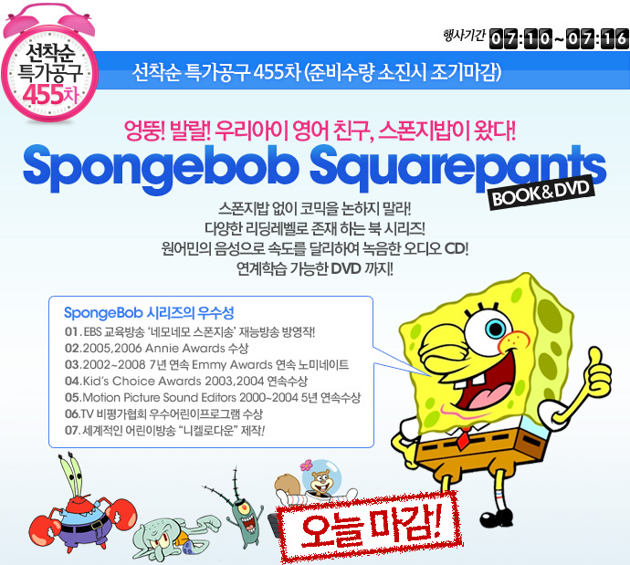 [¼±Âø¼ø°ø±¸] Á¾·á[¼±Âø¼ø Ư°¡°ø±¸ 455Â÷] Spongebob Squarepants ½ºÆùÁö¹ä (±â°£: ~7/16±îÁö) ÇѼöÀÎ