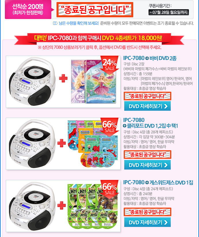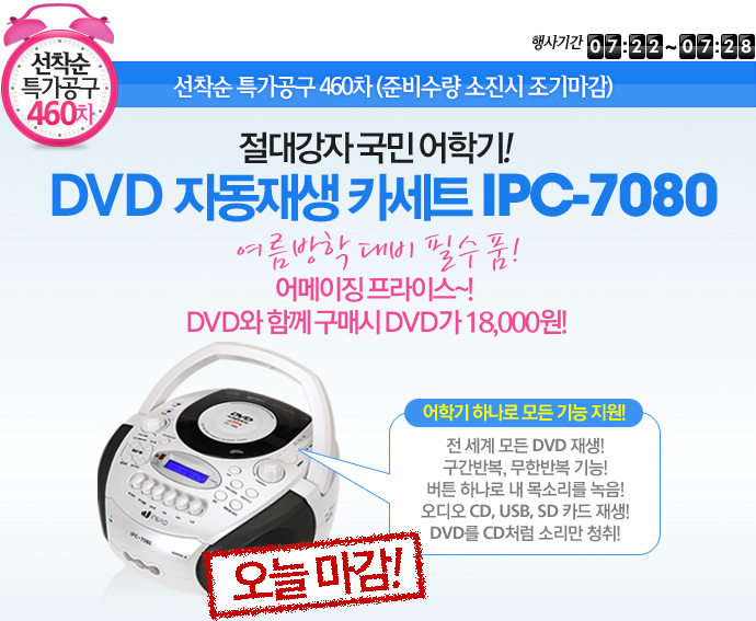 [¼±Âø¼ø°ø±¸] Á¾·á[¼±Âø¼ø Ư°¡°ø±¸ 460Â÷] DVD ÀÚµ¿Àç»ý Ä«¼¼Æ® IPC-7080 (±â°£: ~7/22±îÁö) |
