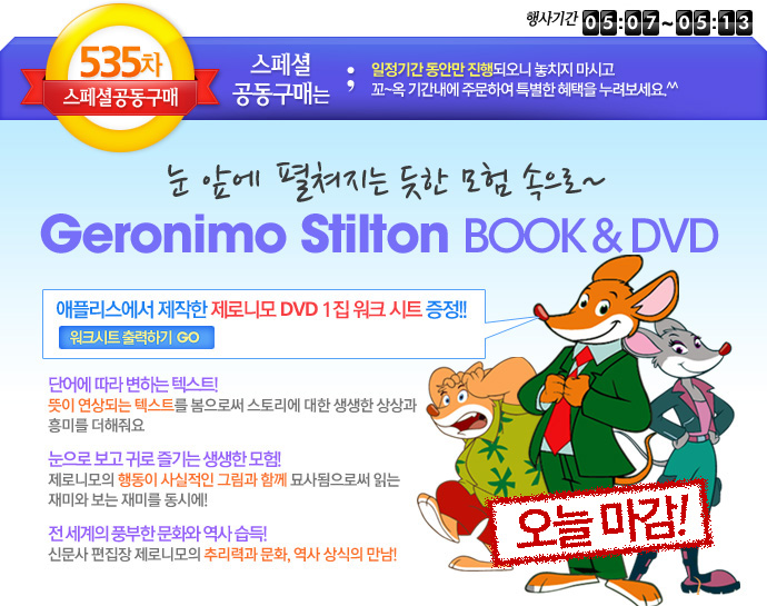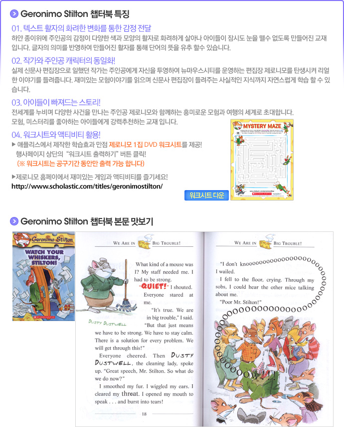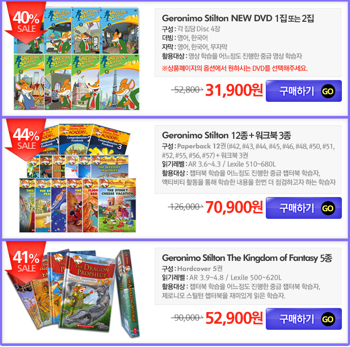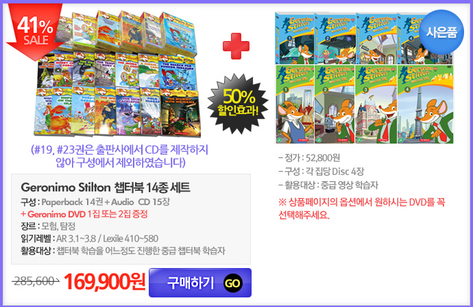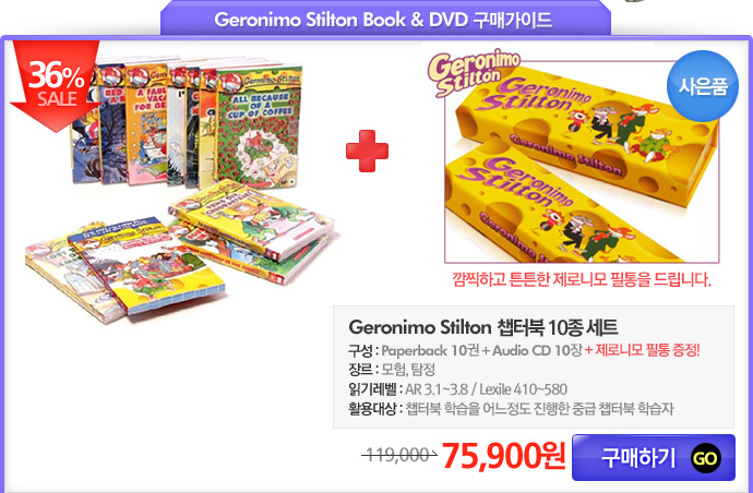 <table width="690" border="0" cellspacing="0" cellpadding="0"> <tr> <td><img src="/shop/data/skin/season2/etc/img/spkongu150506_Geronimo01.jpg" width="690" height="545" border="0" usemap="#sheet"></td> </tr> <tr> <td><img src="/shop/data/skin/season2/etc/img/spkongu150506_Geronimo02.jpg" width="690" height="452" border="0" usemap="#prod1"></td> </tr> <tr> <td><img src="/shop/data/skin/season2/etc/img/spkongu150506_Geronimo03.jpg" width="690" height="449" border="0" usemap="#prod2"></td> </tr> <tr> <td><img src="/shop/data/skin/season2/etc/img/spkongu150506_Geronimo04.jpg" width="690" height="685" border="0" usemap="#prod3"></td> </tr> <tr> <td><img src="/shop/data/skin/season2/etc/img/spkongu150506_Geronimo05.jpg" width="690" height="858" border="0" usemap="#down"></td> </tr> <tr> <td height="26" style="vertical-align:top;text-align:right;padding-right:20px;"><SCRIPT type=text/javascript>MediaPlayer('','kongu120126_geronimo.m4a',222,26,true);</SCRIPT></td> </tr> <tr> <td><img src="/shop/data/skin/season2/etc/img/spkongu150506_Geronimo06.jpg" width="690" height="1024" border="0" usemap="#view"></td> </tr> </table> <map name="view"> <area shape="rect" coords="16,806,193,841" href="/shop/board/view.php?id=contents&search[subject]=on&search[word]=geronimo&no=1437" target="_blank" onFocus="this.blur();"> </map> <map name="prod1" id="prod1"> <area shape="rect" coords="518,390,679,446" href="/shop/goods/goods_view.php?&goodsno=21350" target="_blank" onFocus="this.blur();"> </map> <map name="prod2" id="prod2"> <area shape="rect" coords="212,385,373,444" href="/shop/goods/goods_view.php?&goodsno=37937" target="_blank" onFocus="this.blur();"> </map> <map name="down" id="down"> <area shape="rect" coords="362,379,469,408" href="/KIZ/inside3/geronimo_worksheet.zip"> <area shape="rect" coords="14,363,339,385" href="http://www.scholastic.com/titles/geronimostilton/" target="_blank" onFocus="this.blur();"> </map> <map name="sheet" id="sheet"> <area shape="rect" coords="46,286,204,323" href="/shop/board/list.php?id=geronimo" target="_blank" onFocus="this.blur();"> </map> <map name="prod3" id="prod3"> <area shape="rect" coords="514,154,680,209" href="/shop/goods/goods_view.php?&goodsno=37829" target="_blank" onFocus="this.blur();"> <area shape="rect" coords="518,382,680,440" href="/shop/goods/goods_view.php?goodsno=41292" target="_blank" onFocus="this.blur();"> <area shape="rect" coords="516,602,683,659" href="/shop/goods/goods_view.php?&goodsno=39894&category=009005003014" target="_blank" onFocus="this.blur();"> </map>