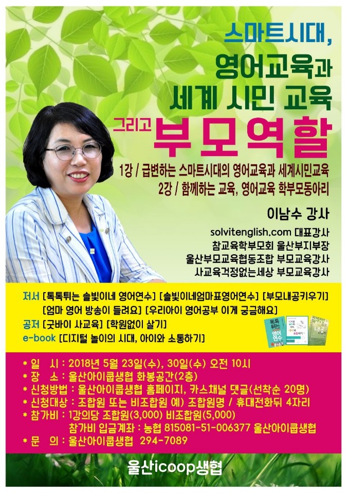 ½º¸¶Æ®½Ã´ë, ¿µ¾î±³À°°ú ¼¼°è½Ã¹Î±³À° ±×¸®°í ºÎ¸ð¿ªÇÒ ¢Æ °»ç : ¼Öºû¾ö¸¶ À̳²¼ö (ÅåÅ寢´Â ¼ÖºûÀÌ³× ¿µ¾î¿¬¼ö ÀúÀÚ, solvitenglish.com ´ëÇ¥°»ç)