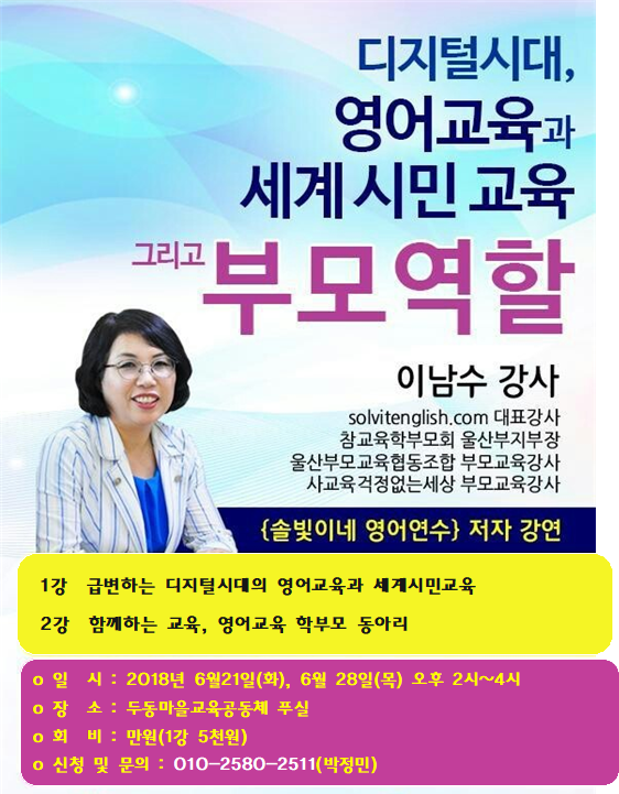 µðÁöÅнôë, ¿µ¾î±³À°°ú ¼¼°è½Ã¹Î±³À° ±×¸®°í ºÎ¸ð¿ªÇÒ ¢Æ °»ç : ¼Öºû¾ö¸¶ À̳²¼ö (ÅåÅ寢´Â ¼ÖºûÀÌ³× ¿µ¾î¿¬¼ö ÀúÀÚ, solvitenglish.com ´ëÇ¥°»ç)