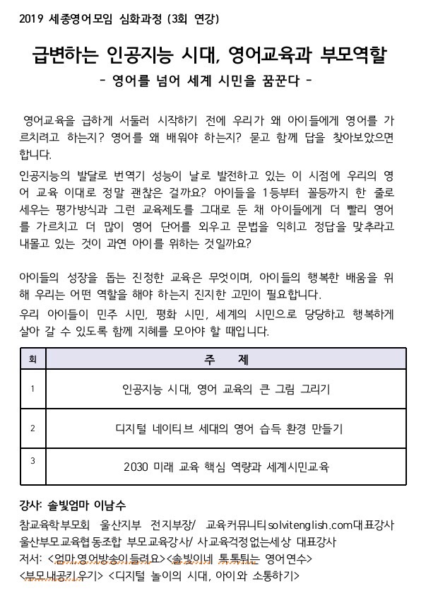 2019 ¼¼Á¾ ¿µ¾î¸ðÀÓ ½Éȱ³À°