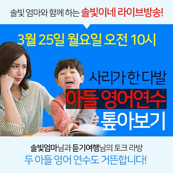 ¼ÖºûÀÌ³× 3¿ù Á¤±â ¶ó¹æ! 3¿ù 25ÀÏ(¿ù) ¿ÀÀü 10½Ã ¾Æµé ¿µ¾î¿¬¼ö Åì¾Æº¸±â |