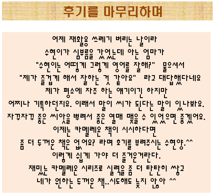 ¿µ¾î¸¦ Áñ°Ì°Ô Áñ±â´Â ¼öÇö¾ç~~!!! ³Ê¹« ¸ÚÁö´Ù°í ÀüÇØ ÁÖ¼¼¿ä^^~