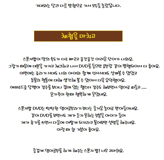 2     ä¹Ì¿µ [¾ÖÇø¾´Ô]±×·¯°Ô¿ä, ¾î¶»°Ô ´ÞÆØÀÌ °æÁÖ¸¦ º¸¸é¼­ ÇܽºÅÍ °æÁÖ¸¦ »ý°¢Çß´ÂÁö, ½ºÆùÁö¹äÀ» º¸¸é¼­ Á¡Á¡ ´à¾Æ°¡´Â °Í °°¾Æ¿ä. ±×·¡µµ Àç¹ÌÀÖ°í º¸°í ¿µ¾î·Î °è¼Ó ¶°µé¾î¼­ ¿Ã·È´ä´Ï´Ù. (´Ù¸¥ °÷À¸·Î ÇâÇØ¼­ ¾ÆÀ̰¡ ³î¶ó´Â ¼Ò¸®°¡ µé·Á¿ä.) µ¹¹ßÀû »óȲÀ̶ó ±×·¡µµ Ä§ÂøÇÏ°Ô ´ÙÀ½ ÁøÇàÀ» ÇØ¼­ ¸¹ÀÌ ÄDZ¸³ª ´À²¸¿ä.