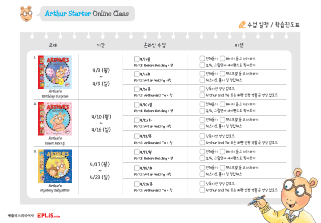 ¿ù¿äÀÏ, È¿äÀÏ, ¸ñ¿äÀÏ EPLiS Class [Arthur Starter ÀÚ·á½Ç]¿¡