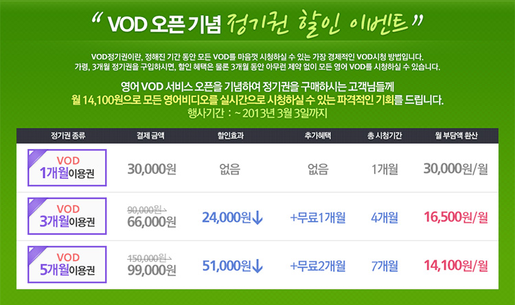 ¢ºVOD ¿ÀÇ ±â³ä Á¤±â±Ç ÇÒÀÎ&Ãß°¡±â°£ÁõÁ¤ À̺¥Æ® º¸±â Go |