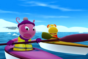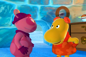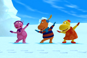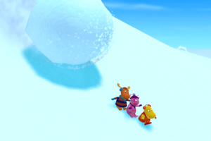 PABLO announces that he is the Yeti -- a hairy, smelly creature of the frozen north, who likes to eat raisins and give snow-bellies. (He also likes to get funky to some James Brown-style R&B). He leads UNIQUA, TASHA, and TYRONE on a Yeti-chase, all the way to his igloo in the frozen north. |
