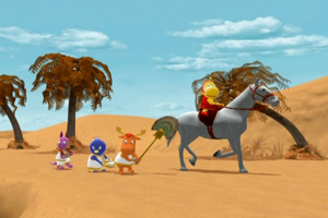 TASHA is Princess of Egypt, and TYRONE, PABLO, and AUSTIN are her servants. Only the princess can end Egypt¡¯s horrible drought, by bringing three precious gifts to the sphinx, UNIQUA. Will the princess finally unlock the Nile waters? Broadway-style musical numbers ring through the desert in this Egyptian adventure. |