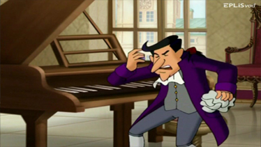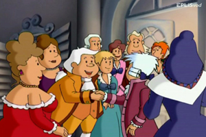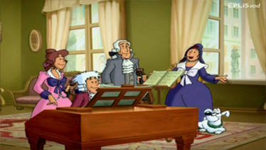 | The episode ¡°Into the Wide World¡± begins with the Piano Trio No. 7 in G Major KV 564, 3rd Movement, which is played all together by Amadeus, Leopold and Nannerl. Father Leopold, who often shares the scrapes his son gets into, is musically represented by his personal theme, the Horn Concerto No. 2 in E Flat Major KV 417 (3rd Movement, Rondo). In sharp contrast to Leopold is the intriguer Monti, whose sly machinations are emphasized by the rather sombre tones of the Kleinen Trauermarsch in C Minor KV 453a. |