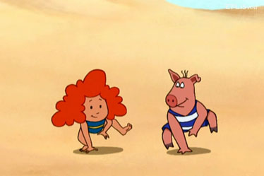 It¡¯s a superb day at the beach and Sidestep the crab is showing Maggie,