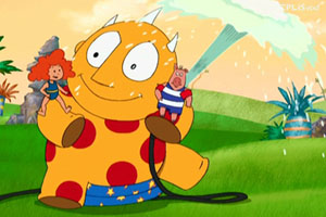 It¡¯s hot! Very hot! It¡¯s even too hot to walk to the beach. Fortunately Hamilton has an inflatable wading pool they can play in, but the Beast is too big to fit into it. How can they all have fun and cool off in the little pool? The solution: the Beast holds the water hose pointing up like a fountain and Maggie and Hamilton use him as a big spotted water slide!