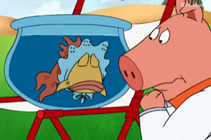 but Fishy looks very unhappy. Realizing that his pet is homesick, Hamilton