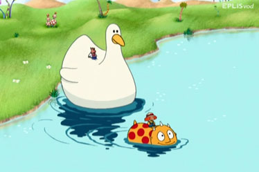 ride across the river. The Beast and the Duck have a little swimming race, and