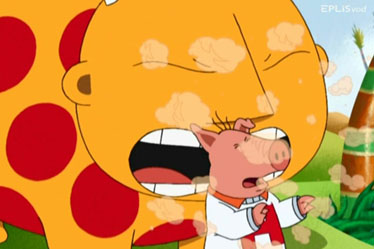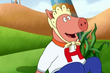 She recruits Hamilton to be the baby in her baby carriage, and the Beast to be