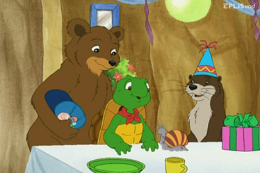Bear's surprise birthday party, Franklin is determined to be on time. However,