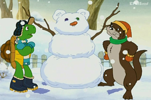 play outside in the snow although he doesn't want to. The ice on the pond is too