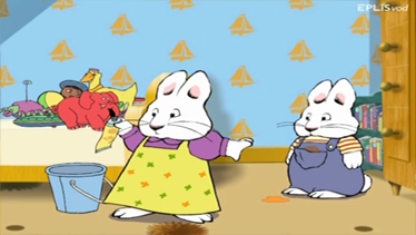 Ruby wants to clean up Max's messy room but Max cannot throw anything away. Max helps Ruby by tidying the mess away ? into his pocket!