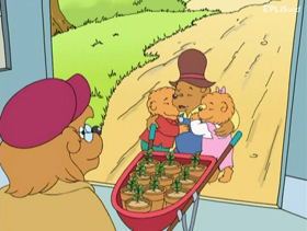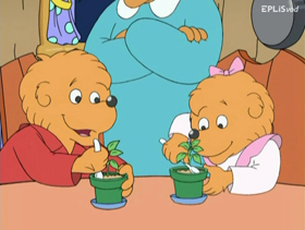 Looking for something to do their environmental school project on, Brother and Sister visit Professor Actual Factual at the Bearsonian Institute. Not only do they discover that too much trash in Bear Country is a big problem, they also learn about endangered species such as the Bumbleberry tree - one of which Papa is intending to cut down to make a very special table. By showing them how to recycle eggshells as plant fertilizer, Mama helps the cubs discover that even little cubs like them can help reduce waste. Not only do the cubs spread the word to their friends who come up with their own ways to recycle, they help Papa realize he should help the environment by planting new trees instead of cutting them down.