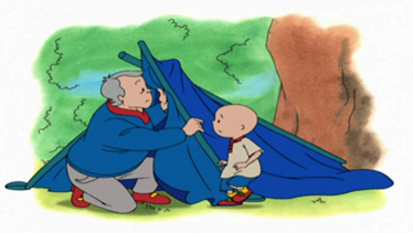 Grandpa tells Caillou about the time when his Daddy was a little boy and they went on a camping trip. Caillou loves the idea of camping and he and Grandpa set up the tent in the garden. Caillou is excited to see the stars in the sky and the fireflies in the bushes. But once they settle in to go to sleep, Caillou gets a bit nervous, so Grandpa comes up with a surprise solution!