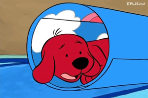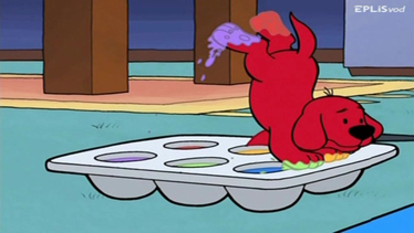 for the school art fair. Suddenly, by accident, Clifford runs through the