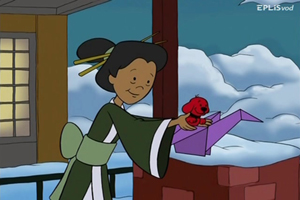 When a snow storm prevents Shun, Emily Elizabeth, and Nina from playing outside, the three are very bored.  Shun decides to entertain his friends with a traditional Japanese story about Issunboshi? a very small boy, (dog), who ends up saving the day with his big heart and limitless bravery.  We dissolve into a fantasy where our kids and a animals play the roles.