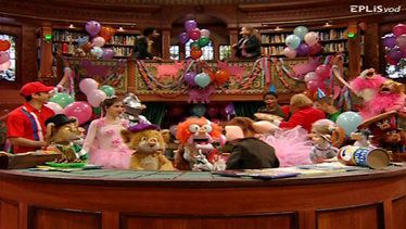 Theo and Cleo leave Marmy in charge of the cubs, and she throws a big pig party in the library.