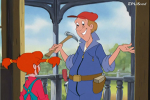Pippi befriends an inept, but good-natured carpenter and manages to help him