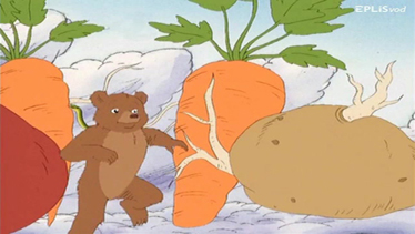 Inspired by Mother Bear's garden, Little Bear plants sunflowers and imagines a garden full of giant vegetables that he and No Feet visit.