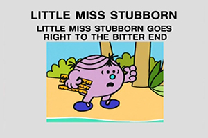 | It's no joke when Little Miss Brainy and Little Miss Stubborn meet up, because each of them wants to get the better of the other.