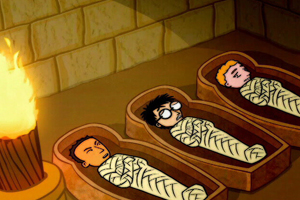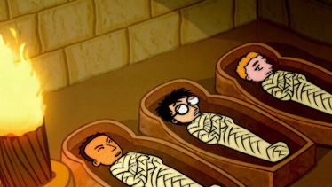 The Trio accidentally warps to ancient Egypt where they meet the young Pharoah Thutmose and, thanks to his evil minister Hatsnat, get a little too up close and personal with the mummification process.