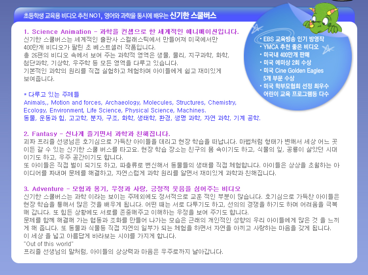 º£½ºÆ® ÇѱÛÃ¥ ¡®½Å±âÇÑ ½ºÄð¹ö½º ŰÁÀÇ ¿µ¾î¿øº»ÀÎ ½Å±âÇÑ ½ºÄð¹ö½º ¸®´õ½ººÏÀ» ¹ÙÅÁÀ¸·Î Á¦ÀÛµÈ ÃʵîÇлý ±³À°¿ë DVD/ºñµð¿À Ãßõ No. 1 ±³Àç! ±³À°¹æ¼Û¿¡¼ ¹æ¿µÇÏ¸ç ½ÃûÀÚµéÀÇ Àα⸦ ÇѸö¿¡ ¹ÞÀº ÈÁ¦ÀÇ ÇÁ·Î±×·¥À¸·Î Àü¼¼°èÀûÀ¸·Î ±× ÇнÀÈ¿°ú¸¦ ÀÎÁ¤¹ÞÀº ½Ã¸®ÁîÀ̸çMagic School Bus ¸®´õ½ººÏ°ú ¿¬°èÇØ ÇнÀÇÏ¸é ´õ¿í ³ôÀº ÇнÀÈ¿°ú¸¦ ±â´ëÇÒ ¼ö ÀÖ½À´Ï´Ù.