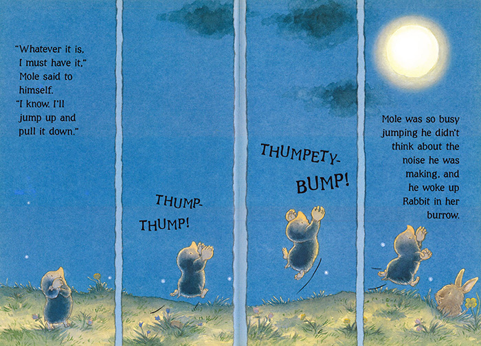IntroductionThe Mole thinks the moon is the most beautiful thing he¡¯s ever seen and he wants it, so he tries to pull the moon down.