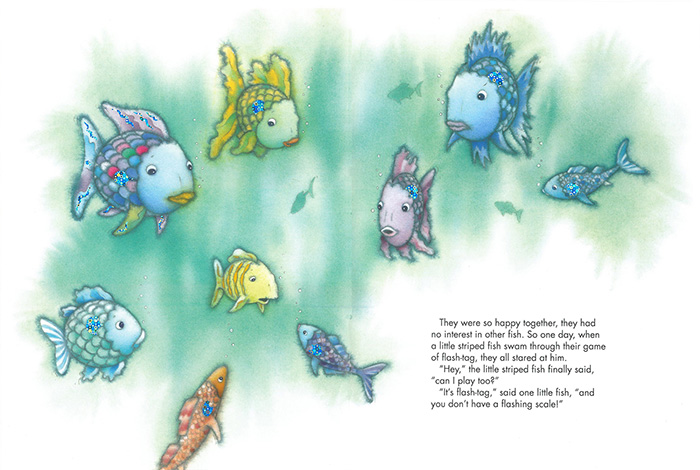 ¾î´À ³¯ Rainbow Fish¿Í Ä£±¸µé ¾Õ¿¡ ÁÙ¹«´Ì ¹°°í±â°¡ ³ªÅ¸³µ¾î¿ä. ÁÙ¹«´Ì ¹°°í±â´Â ÇÔ²² ³î°í ½Í¾î ÇÏÁö¸¸ Ä£±¸µéÀº ±×¸¦ ¹«½Ã Çϳ׿ä. Àڽŵéó·³ ¹Ý¦ÀÌ´Â ºñ´ÃÀÌ ¾ø±â ¶§¹®ÀÌÁÒ. »ó¾îÀÇ ½À°Ý¿¡ ÁÙ¹«´Ì ¹°°í±â°¡ °ï°æ¿¡ óÇϴµ¥ Rainbow Fish¿Í ±×ÀÇ Ä£±¸µéÀÌ ÁÙ¹«´Ì ¹°°í±â¸¦ µµ¿ÍÁÙ±î¿ä?