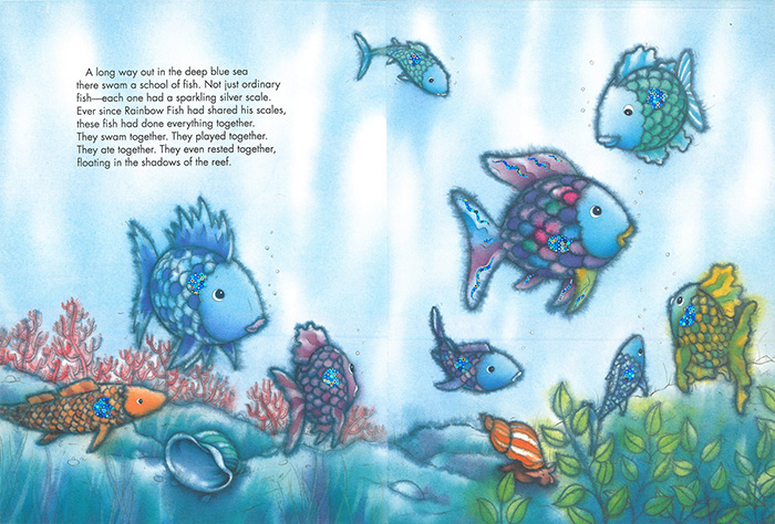IntroductionRainbow Fish is torn between his new friends and a lonely striped fish. When a dangerous and hungry shark appears, a lonely striped fish falls into danger.