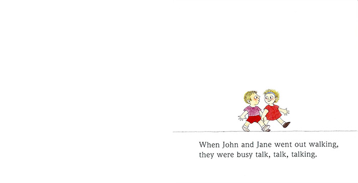 ¹Ýº¹µÇ´Â ´Ü¾î, ¶óÀÓ °¡µæÇÑ ¹®ÀåÀ¸·Î ¡®Àд Àç¹Ì¡¯À¯ÄèÇÑ ±×¸²À¸·Î ¡®º¸´Â Àç¹Ì¡¯µÎ Àι°°ú ÃÖ¼ÒÇÑÀÇ ¹è°æ¸¸ ³²°Ü ³õ°í Æò¸éÀûÀ¸·Î ±¸¼ºÇÑ ±×¸²Àº ºü¸£°Ô ÁøÇàµÇ´Â »óȲÀ» Àß ¹¦»çÇϰí ÀÖ½À´Ï´Ù. ÀûÀýÇÏ°Ô ¹èÄ¡µÈ Å©°í ÀÛÀº ÀǼº¾î°¡ ½Ç°¨³ª´Â Àå¸éÀ» ¸¸µì´Ï´Ù. ¶ÇÇÑ ÀÛ°¡ÀÇ ´Ù¸¥ ÀÛǰ°ú ¸¶Âù°¡Áö·Î ¹Ýº¹µÇ´Â ´Ü¾îÀÇ »ç¿ë, Walking-talking, there-pear µî ÆäÀÌÁö¸¶´Ù µîÀåÇÏ´Â ¶óÀÓÀ¸·Î ¸®µë°¨ÀÖ°Ô ÀÐÀ» ¼ö ÀÖ½À´Ï´Ù.