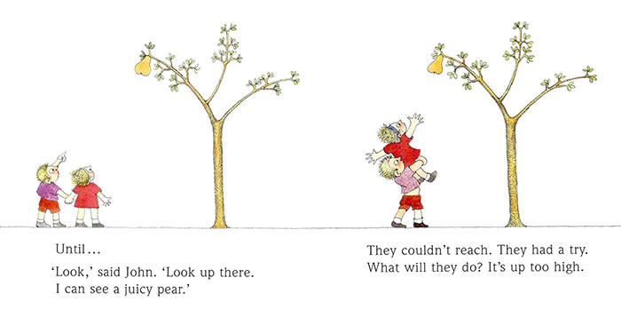 Introduction When John and Jane went out walking they saw a pear in the pear tree. This humorous rhyming story tells of their attempts to reach the pear.