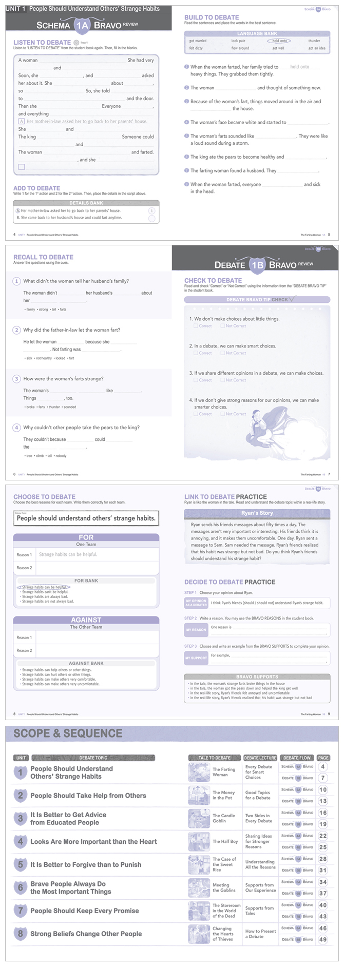 Debate Bravo´Â °¢ unit¿¡¼­ ´Ù¸¥ ÁÖÁ¦·Î ¸Å¹ø ¿ÏÀüÇÑ Åä·ÐÀÇ Àü °úÁ¤À» °æÇèÇÒ ¼ö Àֱ⠶§¹®¿¡, ±³Àç Àüü¸¦ ÅëÆ²¾î 1, 2¹øÀÇ Åä·ÐÀ» Çϵµ·Ï ¼³°èµÈ Ÿ Åä·Ð ±³Àçµé°ú Â÷º°È­ µË´Ï´Ù.