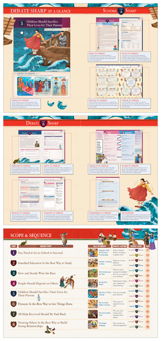 - ÇнÀÀÚµéÀº Âù, ¹Ý ³í°Å¸¦ ±¸¼ºÇϰí, °ø°ÝÇϰí, ´Ù½Ã À籸¼ºÇÏ´Â Åä·ÐÀÇ Áغñ°úÁ¤À» ÅëÇØ ½º½º·Î Âù, ¹ÝÀÇ ÀÔÀå¿¡¼­ Åä·ÐÇÏ°í »ó´ëÆÀÀ» Æò°¡Çϱâ±îÁö ¿ÏÀüÇÑ Åä·ÐÀÇ È帧À» ÇÑ °ú ³»¿¡¼­ °æÇèÇÏ°Ô µË´Ï´Ù. Debate Sharp´Â °¢ unit¿¡¼­ ´Ù¸¥ ÁÖÁ¦·Î ¸Å¹ø ¿ÏÀüÇÑ Åä·ÐÀÇ Àü °úÁ¤À» °æÇèÇÒ ¼ö Àֱ⠶§¹®¿¡, ±³Àç Àüü¸¦ ÅëÆ²¾î 1, 2¹øÀÇ Åä·ÐÀ» Çϵµ·Ï ¼³°èµÈ Ÿ Åä·Ð ±³Àçµé°ú Â÷º°È­ µË´Ï´Ù.