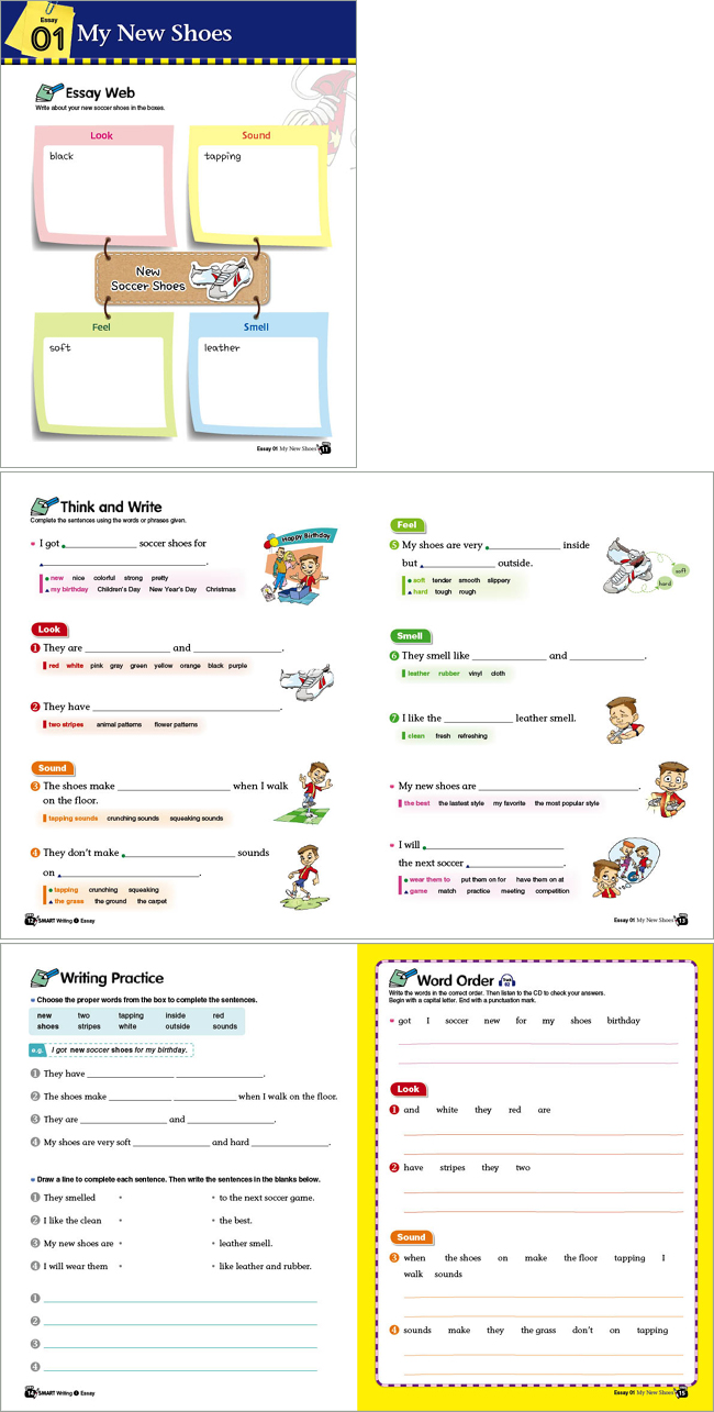½º¸¶Æ® ¶óÀÌÆÃ ½Ã¸®Áî´Â Àϱâ(Diary), ÆíÁö(Letter), µ¶Èݨ(Book Report), ¿¡¼¼ÀÌ(Essay) ÃÑ 4±ÇÀ¸·Î ±¸¼ºµÇ¾î ÀÖÀ¸¸ç, °¢ ±Ç¿¡¼­´Â ÃʵîÇлýµé¿¡°Ô Ä£¼÷ÇÑ ÅäÇÈ 6ÆíÀ» °ñ¶ó ÇнÀÇÒ ¼ö ÀÖµµ·Ï µÇ¾î ÀÖ´Ù. °¢ ±ÇÀÇ Ã¼°èÀûÀÎ ¾²±â ÇнÀ ´Ü°è¸¦ µû¶ó°¡´Ù º¸¸é ±âº»ÀûÀÎ ¹®Àå, ¹®´Ü ±¸¼º»Ó ¾Æ´Ï¶ó ÇÑ ÆíÀÇ Â¥ÀÓ»õ ÀÖ´Â ±ÛÀ» ¿Ï¼ºÇÒ ¼ö ÀÖ°Ô µÈ´Ù.