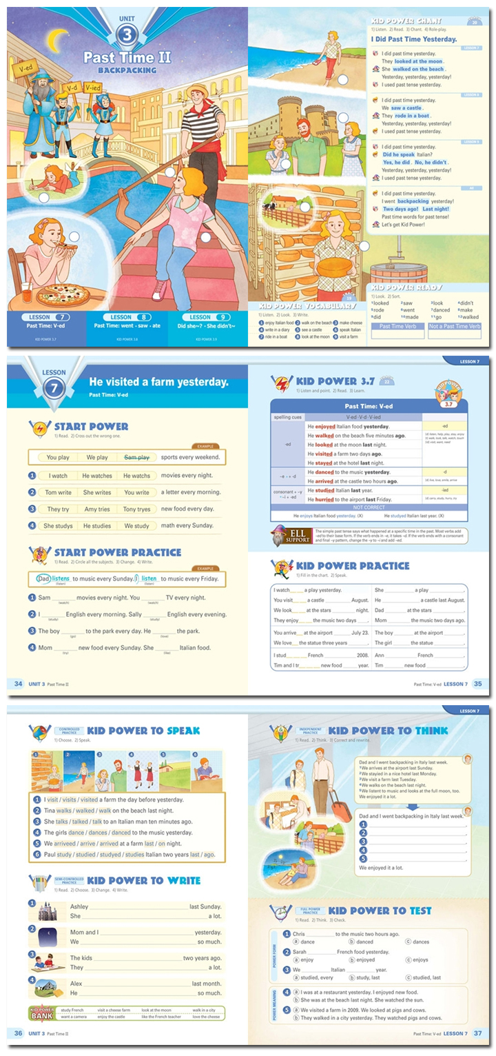 ¡æ ´Ü¼øÈ÷ ¹®¹ý±ÔÄ¢¸¸À» ¾Ï±âÇÏ´Â °ÍÀ¸·Î´Â ¹®¹ýÇнÀÀ» ¿Ï¼ºÇÒ ¼ö ¾ø½À´Ï´Ù. '¹®¹ý'º¸´Ù´Â '¾î¹ý'ÀÇ °³³äÀÌ ÁÖ¸ñ ¹Þ°í ÀÖ´Â ÇöÀçÀÇ ¹®¹ý±³½Ç¿¡¼­´Â ¾ð¾îÀÇ ±ÔÄ¢(rules), ÇüÅÂ(forms), ¾îÈÖ(vocabulary)°¡ °áÁ¤ÀûÀÎ ÀÎDz 3¿ä¼Ò·Î Ȱ¿ëµÇ¾î¾ß ÇÕ´Ï´Ù. µû¶ó¼­, KID POWER GRAMMAR ½Ã¸®Áî´Â ¸Å ´Ü¿ø ÁÖÁ¦(unit theme)¿¡ µû¶ó ±¸ÇöµÈ ±×¸² ¹®¸ÆÀ» ÅëÇØ KID POWER VOCABULARY¸¦ ¿ì¼±ÀûÀ¸·Î ÇнÀÇÒ ¼ö ÀÖµµ·Ï ±¸¼ºÇÏ¿´°í ÀÌ·¯ÇÑ ¾îÈÖ´Â ÇâÈÄ ÁøÇàµÉ ¼¼ °³ÀÇ ·¹½¼¿¡¼­ Áö¼ÓÀûÀ¸·Î ¹Ýº¹µË´Ï´Ù. ¸Å ´Ü¿ø ÁÖÁ¦¿¡ µû¸¥ ¾îÈÖÇнÀÀº ÇнÀÀÚ¿¡°Ô À¯ÀǹÌÇÑ »çÀüÁö½Ä(³»¿ë½ºÅ°¸¶: Content Schema)À¸·Î ÀÛ¿ëÇÏ°Ô µÇ¸ç, ÀÌ·¯ÇÑ ¾îÈÖÇнÀÀ» ÅëÇØ ¾òÀº ÀڽۨÀº ¹®¹ýÀÇ ±ÔÄ¢°ú ÇüÅ ÇнÀÀ» ´õ¿í ¿ëÀÌÇÏ°Ô ÇÕ´Ï´Ù.