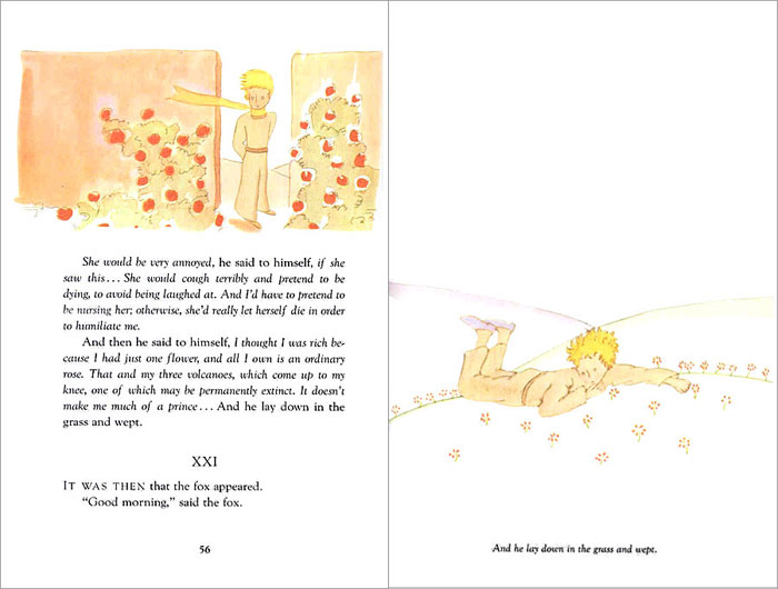 An aviator whose plane is forced down in the Sahara Desert encounters a little prince from a small planet who relates his adventures in seeking the secret of what is important in life. Howard's new translation of this beloved classic beautifully reflects Saint-Exupery's unique, gifted style. Color and b&w illustrations.